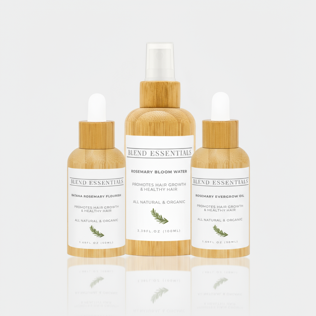 Blended together, this powerful hair care set is designed to give you your healthiest, most radiant hair. The Rosemary Evergrow Oil stimulates growth, reduces shedding, and restores shine with a rich mix of herbal extracts and oils. The Batana Rosemary Flourish deeply repairs and moisturizes, strengthening strands while supporting recovery from damage or stress. To keep hair refreshed and balanced daily, the Rosemary Bloom Water calms the scalp, boosts growth, and revitalizes between washes. Made with 100% natural and organic ingredients, this trio delivers the perfect blend of growth, repair, and refresh.